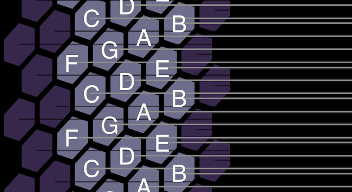 - It affords a two-dimensional isomorphic note layout—a representation for visualizing, manipulating, and fingering pitch sets in a way that is consistent across key transpositions and many diverse tunings.